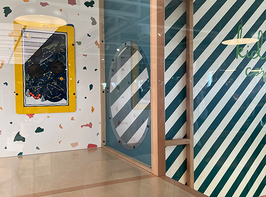 壳牌希望打造一个防破坏性强、与壳牌咖啡品牌风格无缝融合的互动区。设计既要吸引儿童,又需在视觉上保持简洁低调,以满足商务旅客及无儿童顾客的审美需求。挑战在于,如何兼顾趣味性与整体氛围,最终为孩子们创造一个既有互动乐趣又不失品牌质感的空间。