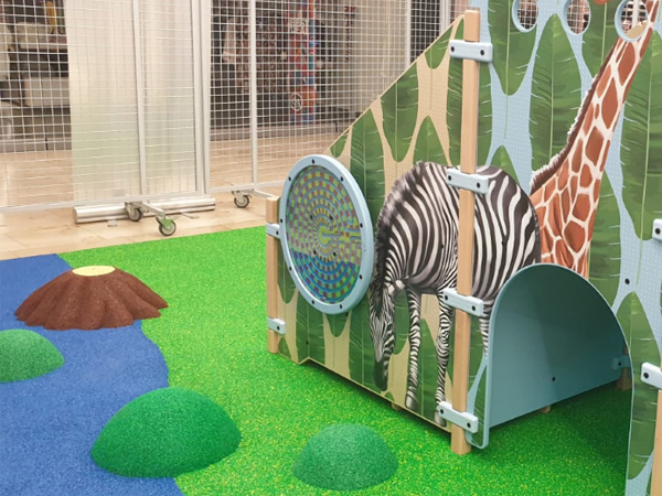 在室内空间打造亲子氛围,一个别致的游乐空间必不可少,适当利用开放的过道,中庭打造集休憩、休闲、娱乐、互动的空间。