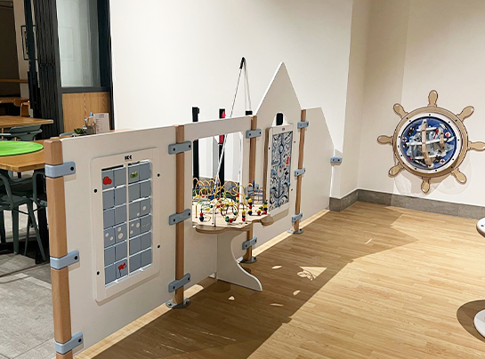 开口处加装带有哈哈镜的IKC围栏组合,使整体更稳固、更具视觉层次,同时确保年幼儿童的安全体验。